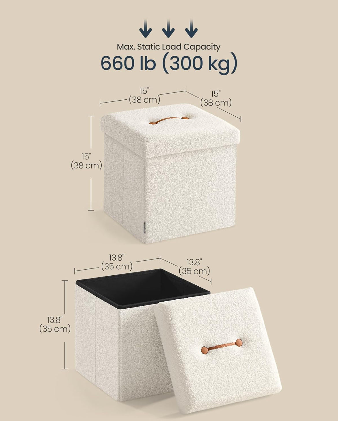 SONGMICS 15" Fleece Folding Storage Ottoman Foot Rest Stool - Cream White