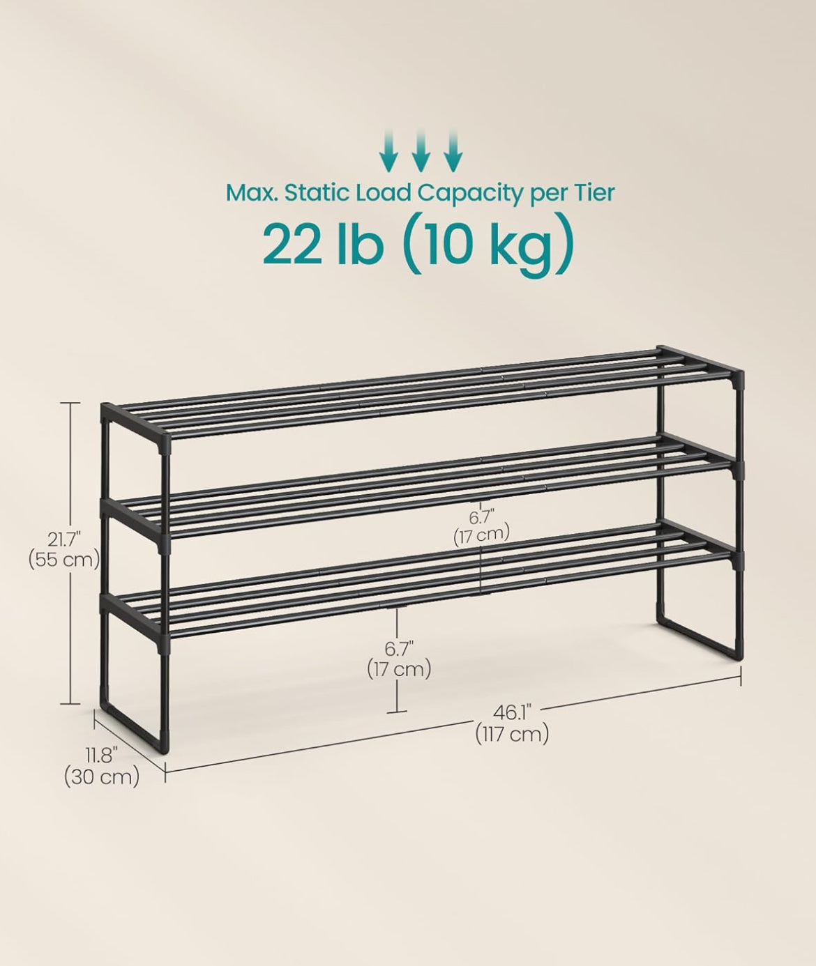 SONGMICS 3 Tier Shoe Rack Organizer Metal Storage Shelf - Black
