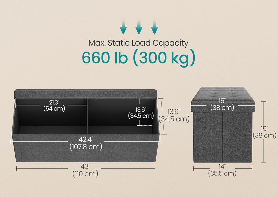 SONGMICS 43" Storage Ottoman Bench Foldable Foot Rest - Dark Gray