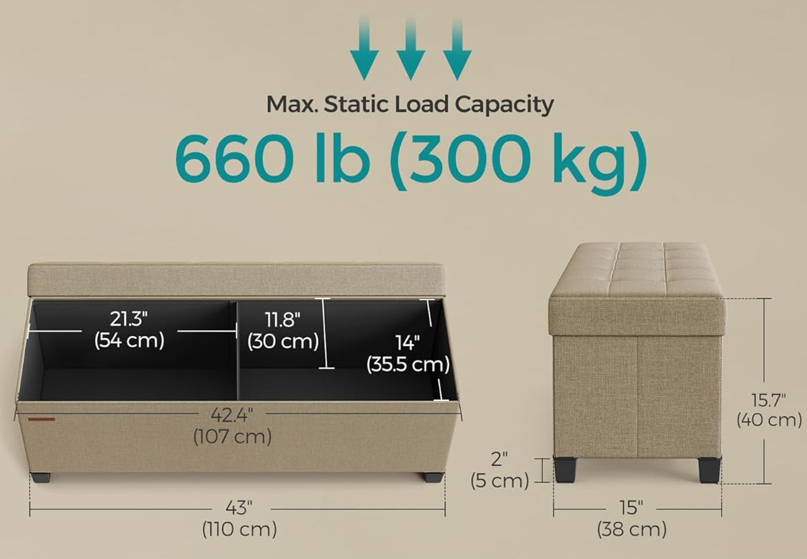SONGMICS 43" Storage Ottoman Bench Foldable Foot Rest with Legs - Camel Brown