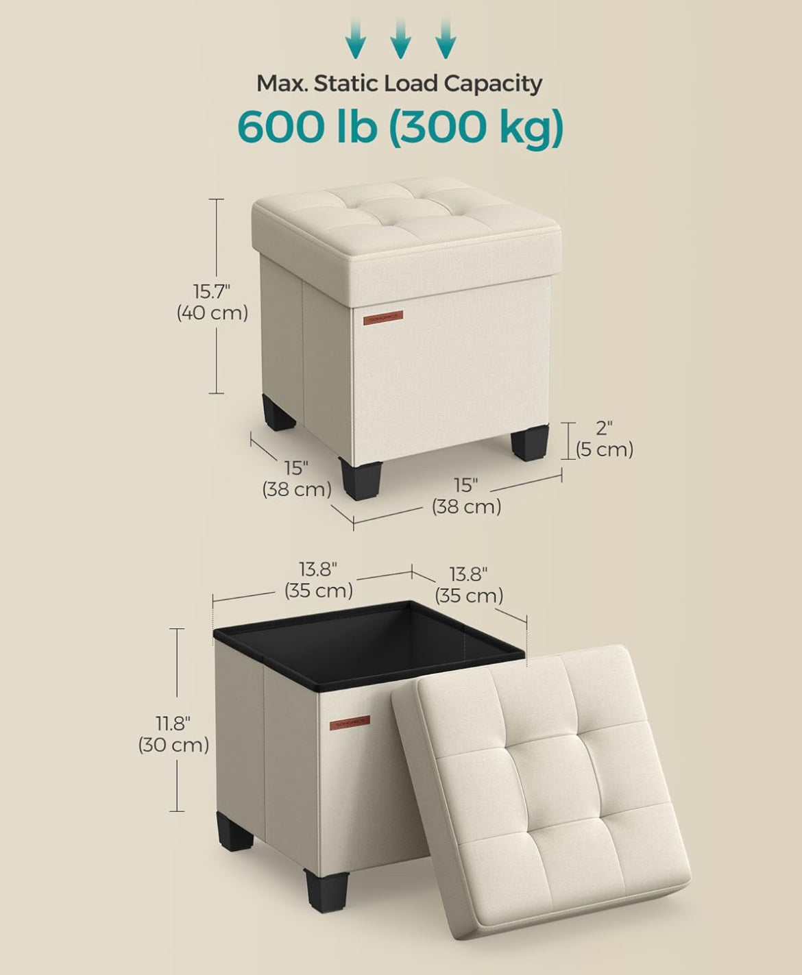 SONGMICS Small Storage Ottoman Foot Rest with Legs - Cream White