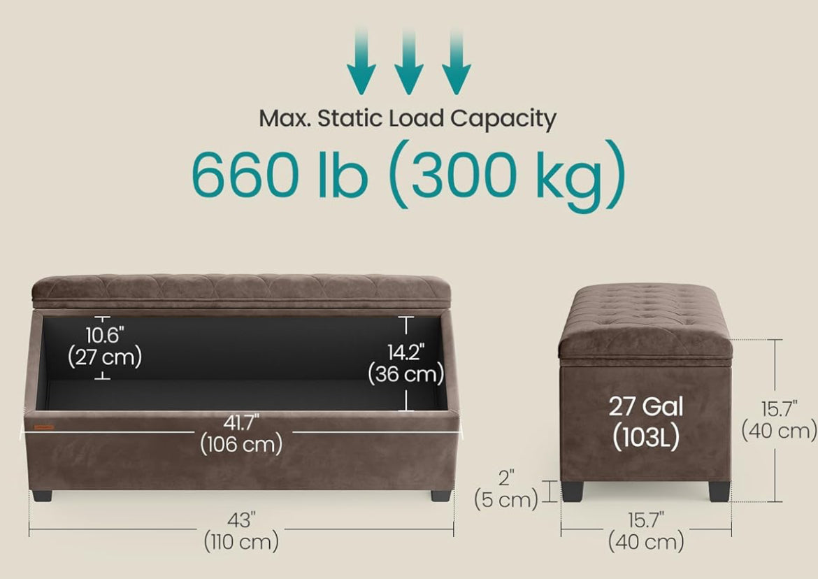 SONGMICS Velvet Storage Ottoman Bench Metal Frame with Legs - Brown
