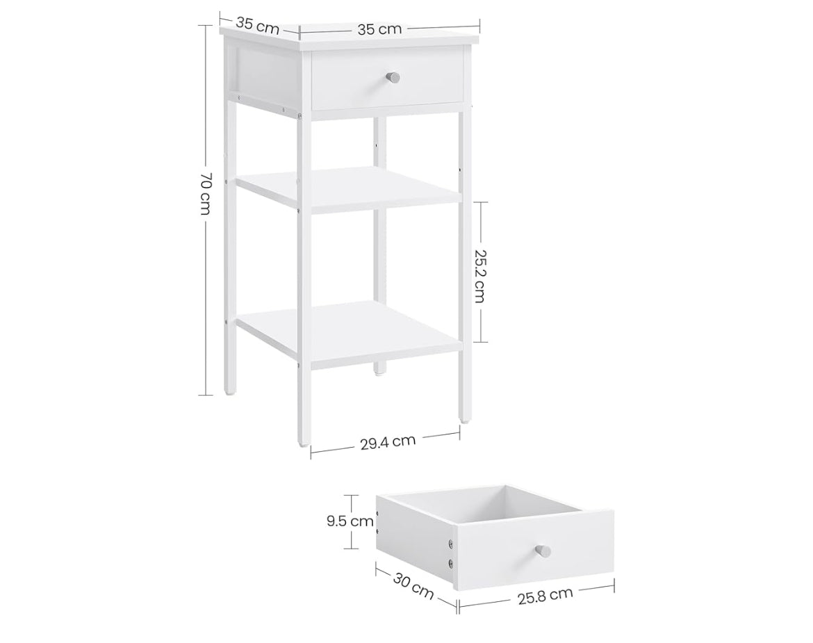 VASAGLE Bedside Small Side Table with 1 Drawer and 2 Storage Shelves - White