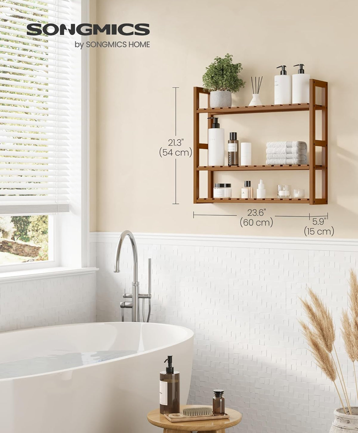SONGMICS Bamboo Bathroom Shelf 3-Tier Adjustable Shelves Wall-Mounted or Stand - Coffee Brown