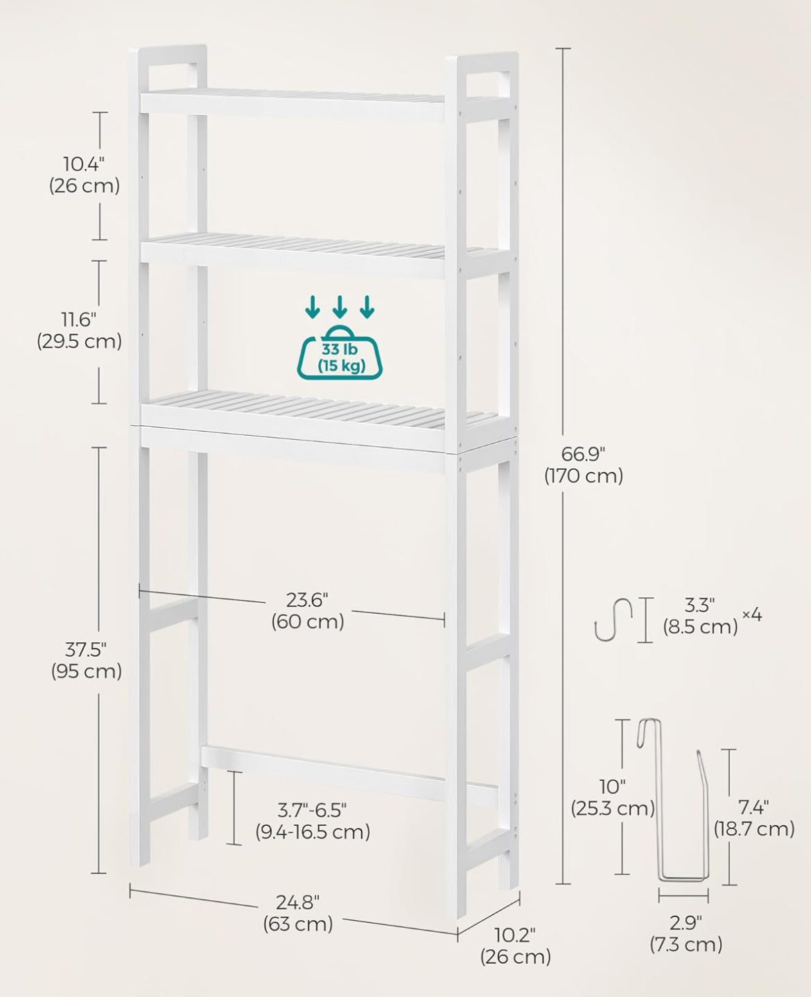SONGMICS Over The Toilet Storage 3-Tier Bathroom Organizer with Adjustable Shelf - White