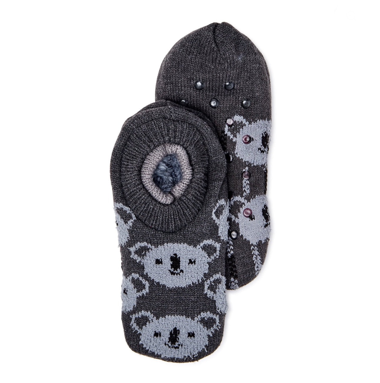 Secret Treasures Women's Double Cuff Critter Slipper 3D Poms - Grey