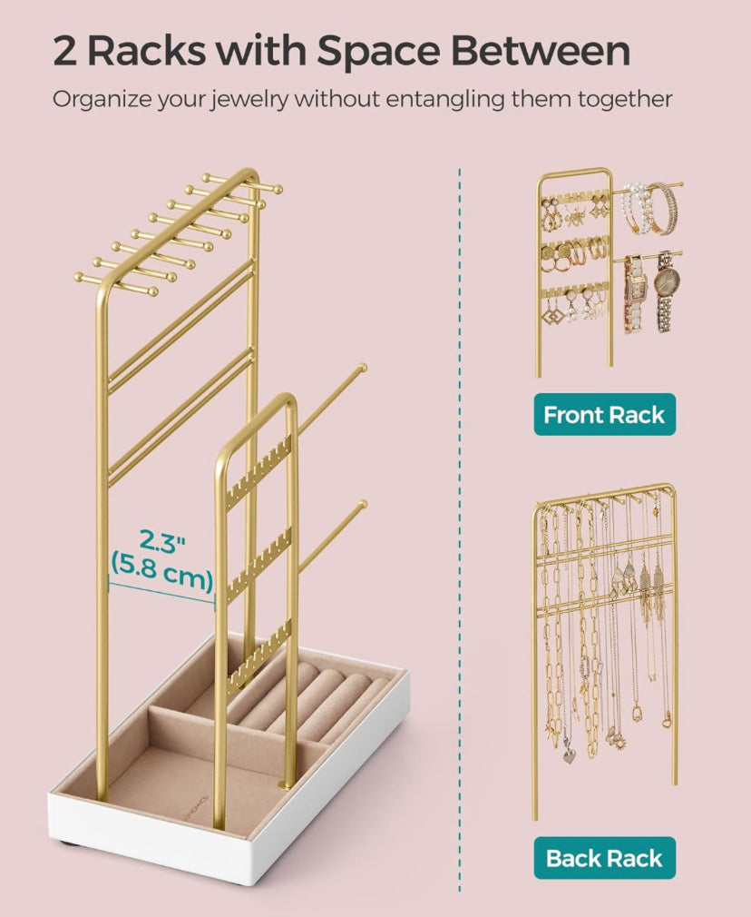 SONGMICS 2 Items Bundle-Jewlery Holders Jewelry Organizer Jewelry Display Stand with Metal Frame - Gold