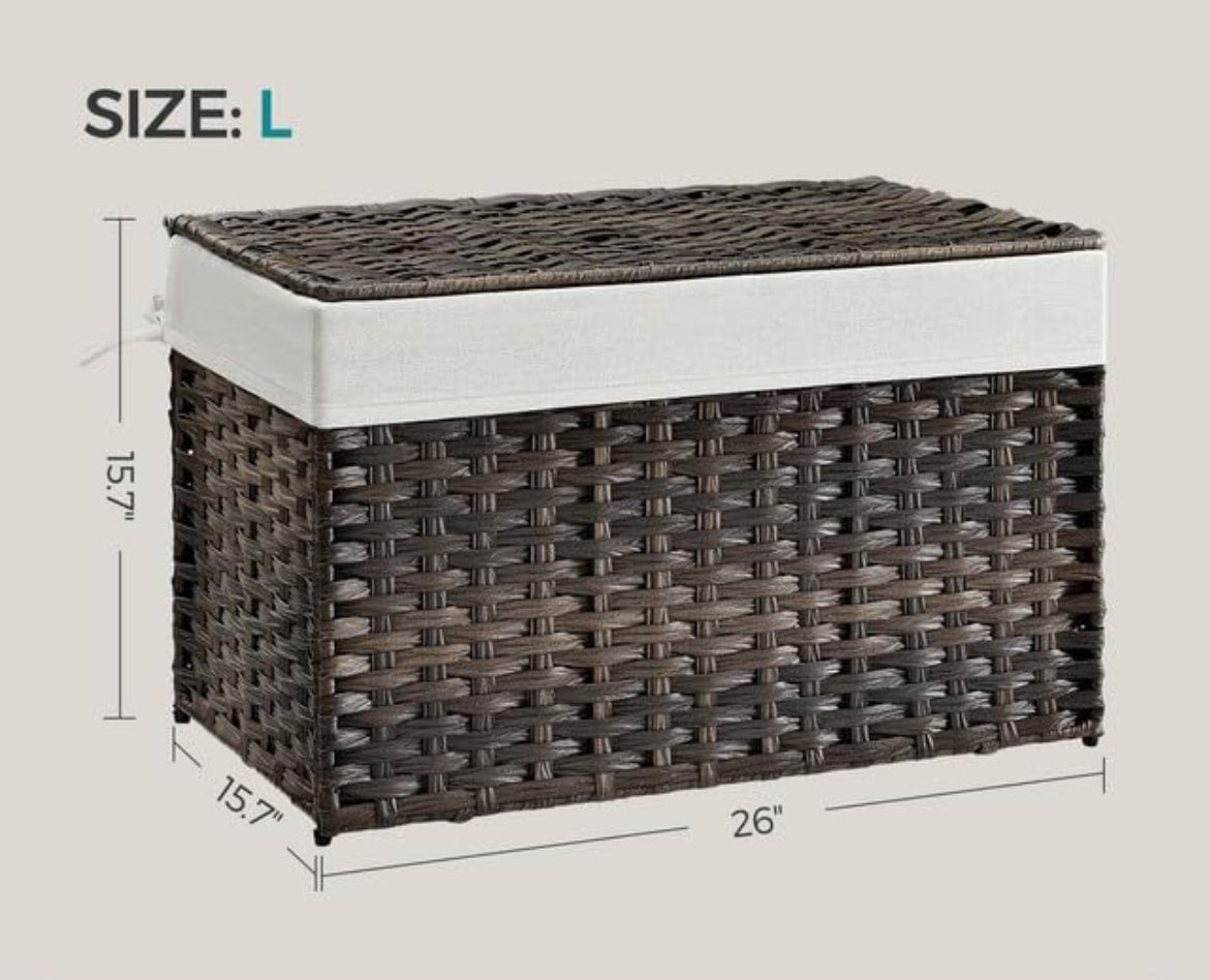 SONGMICS 27.7 Gallon (105L) Storage Bin Woven Blanket Storage Basket with Handles - Brown