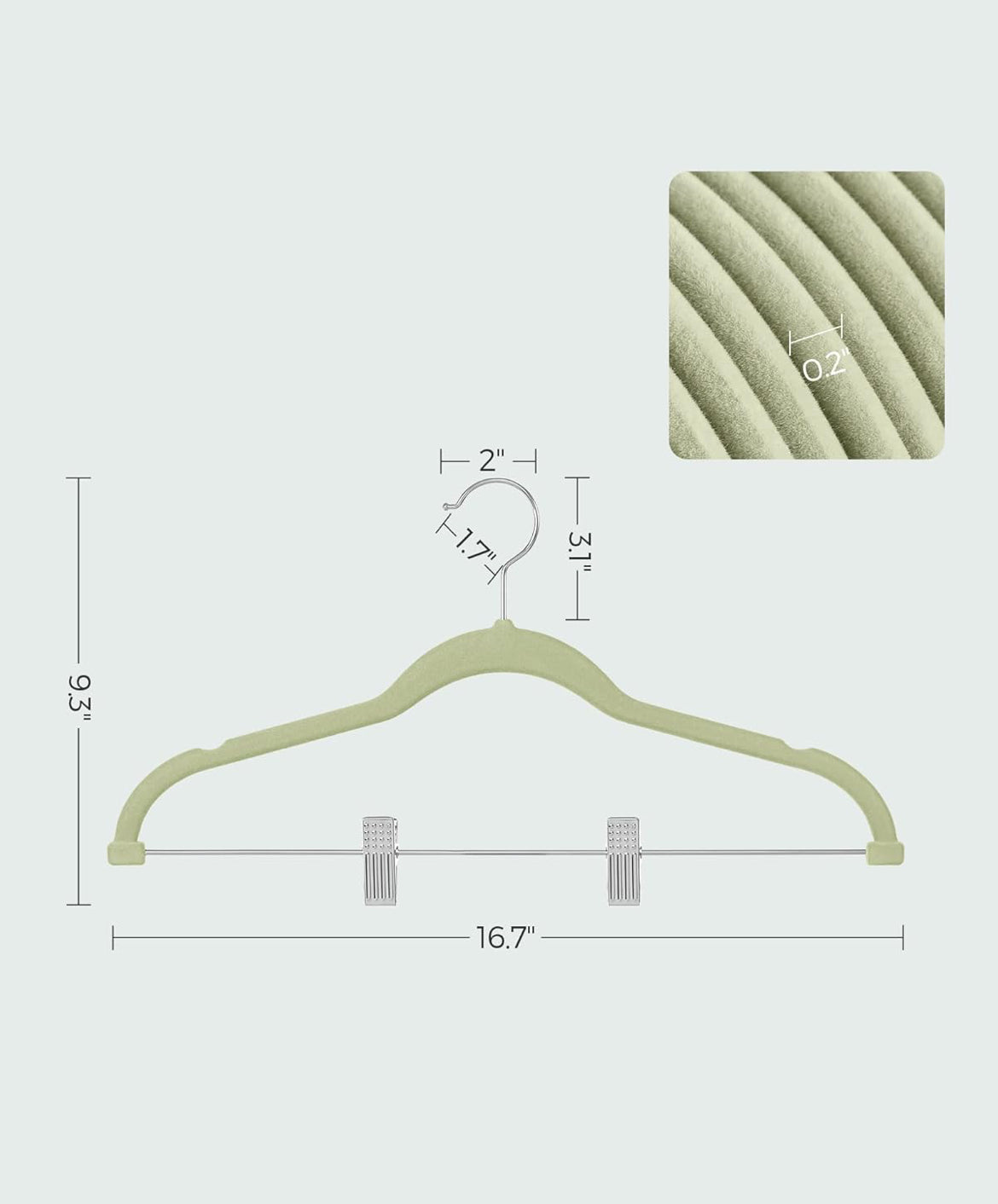 SONGMICS Hangers Long Velvet with Adjustable Clips Set of 30 - Pale Green