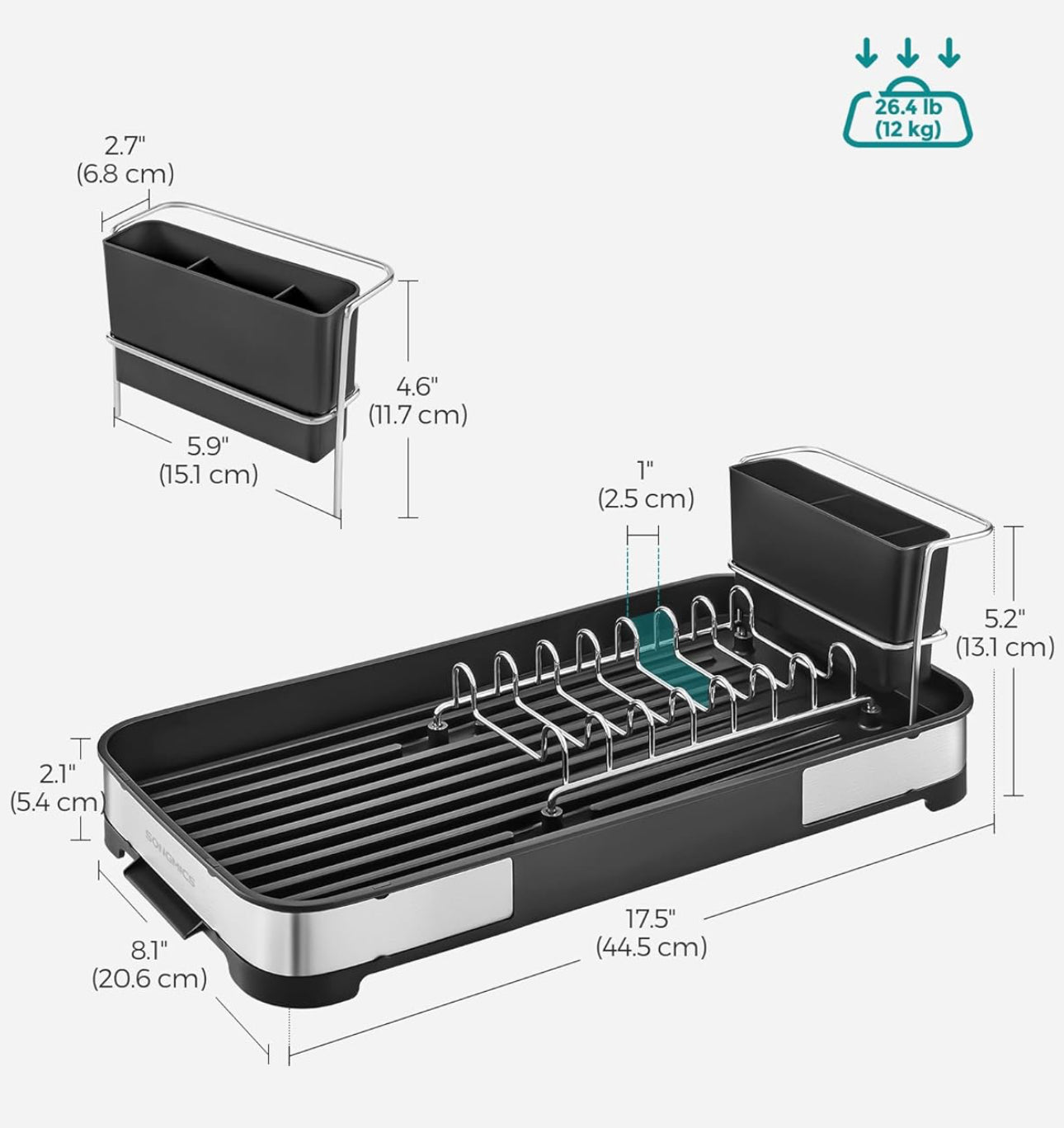 SONGMICS Small Stainless Steel Dish Drying Rack with Drain