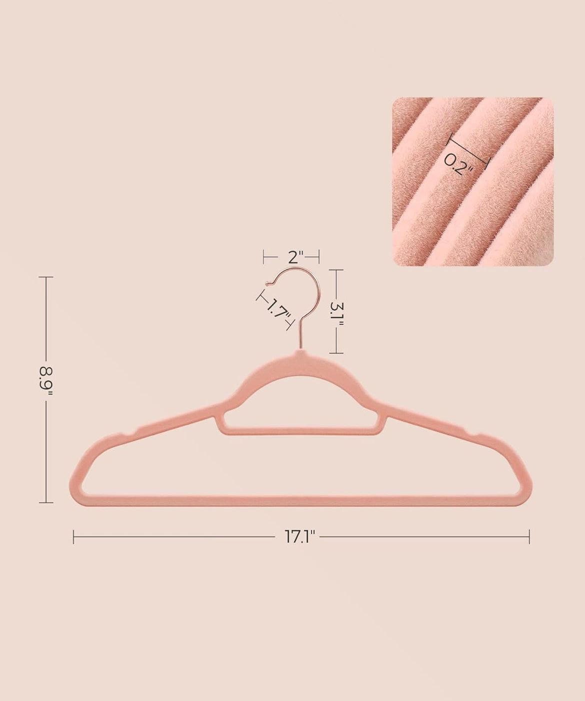SONGMICS Velvet Hangers Clothes Hanger with Rose Gold Swivel Hook Set of 30 - Pink