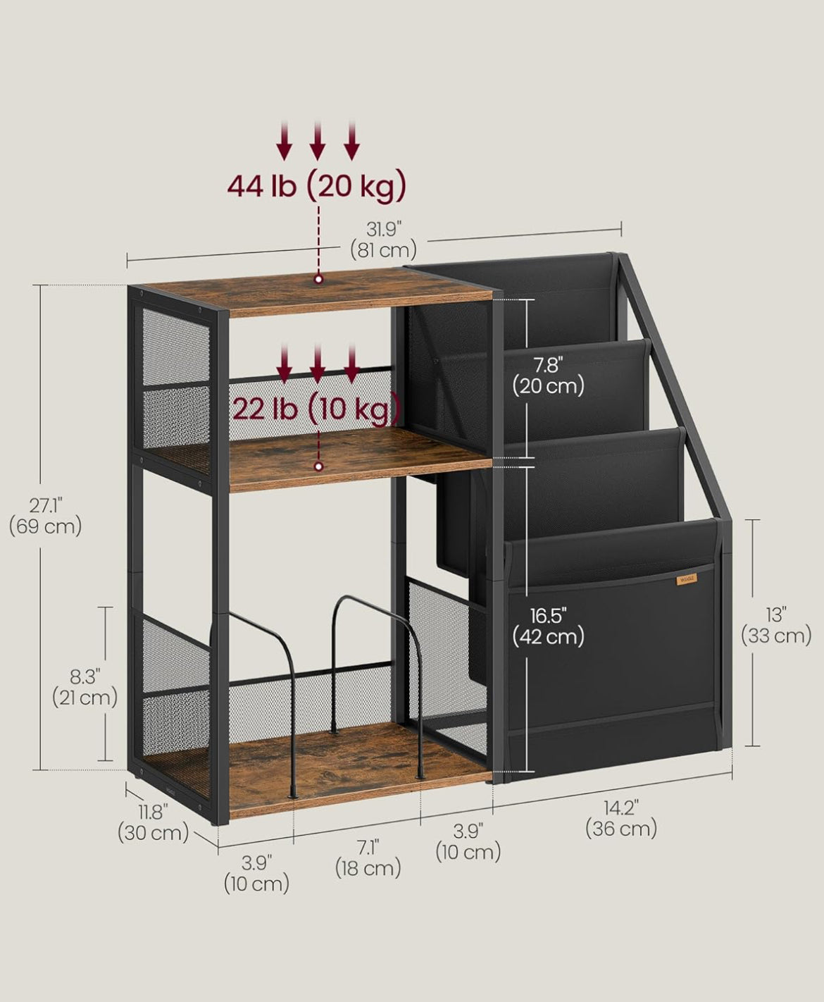 VASAGLE Record Player Stand 3-Tier Side Table Vinyl Record Storage - Brown