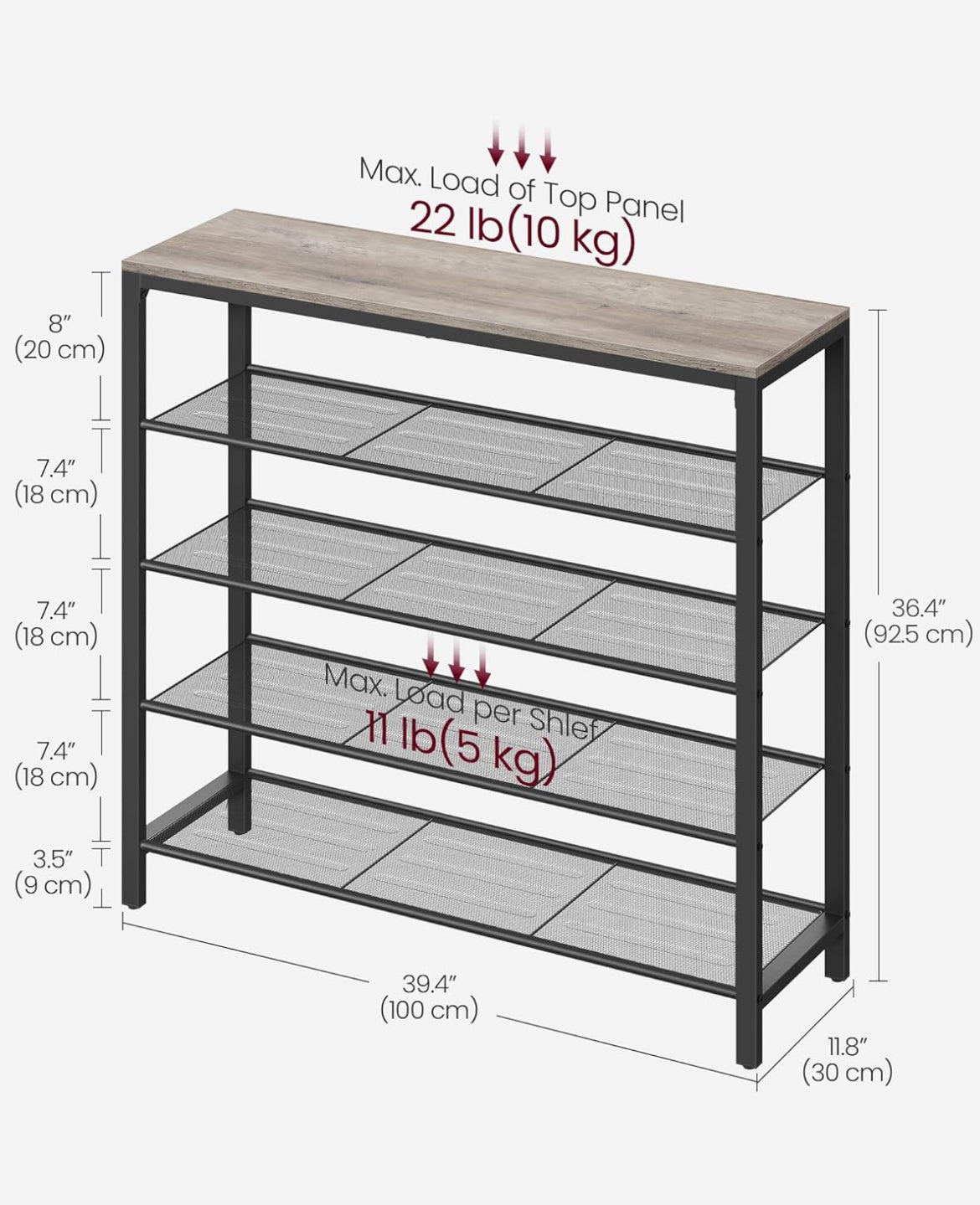 VASAGLE Shoe Rack Organizer for Closet w/ 4 Mesh Shelves w/ Large Top - Greige
