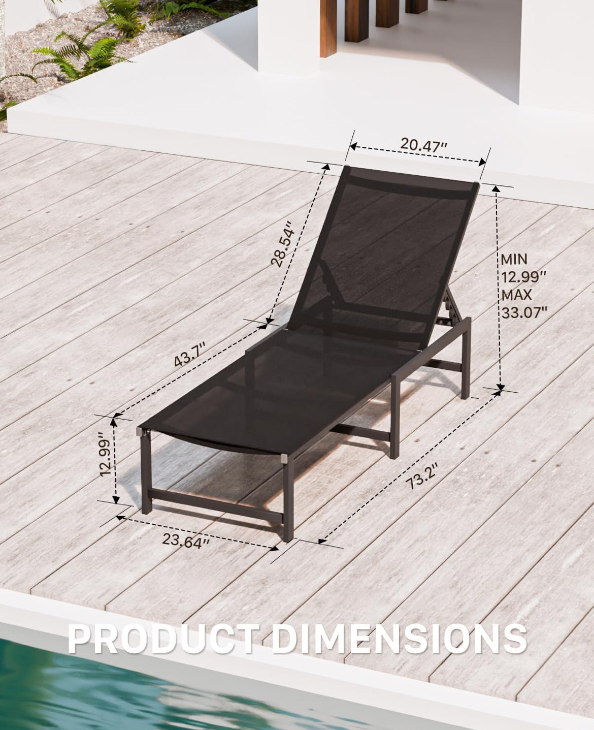 Aluminum Outdoor Chaise Lounge Chairs Patio Metal Deck Lounger 5-Position Adjustable Backrest Chase Recliner Set of 2 - Black
