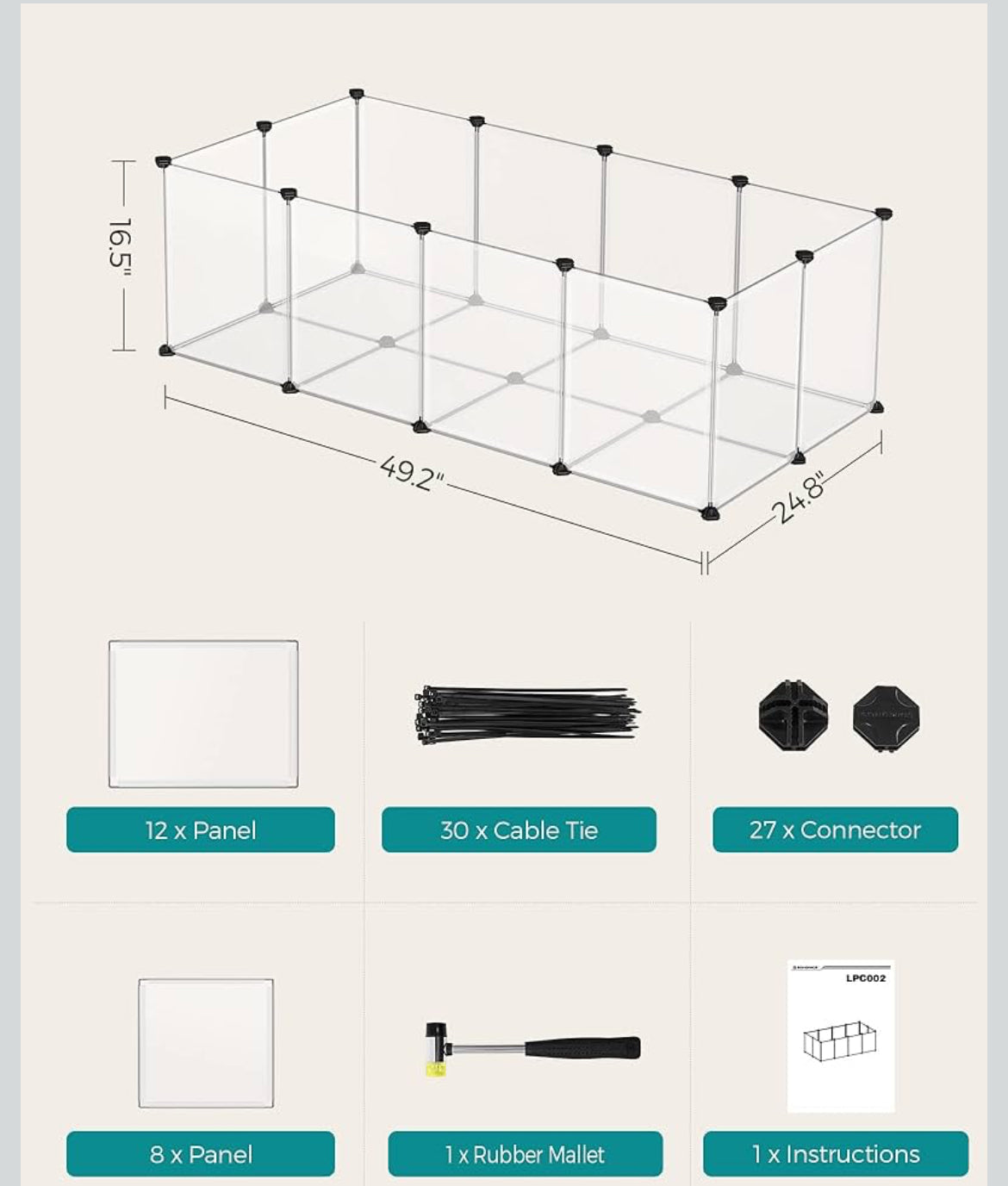 SONGMICS 20 Panels Pet Playpen w/ Floor Fence Indoor DIY Plastic Enclosure - White