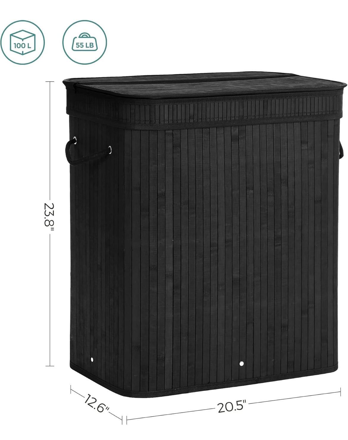 Songmic 26.4 Gal Bamboo Laundry Basket Hamper with Lid - Black