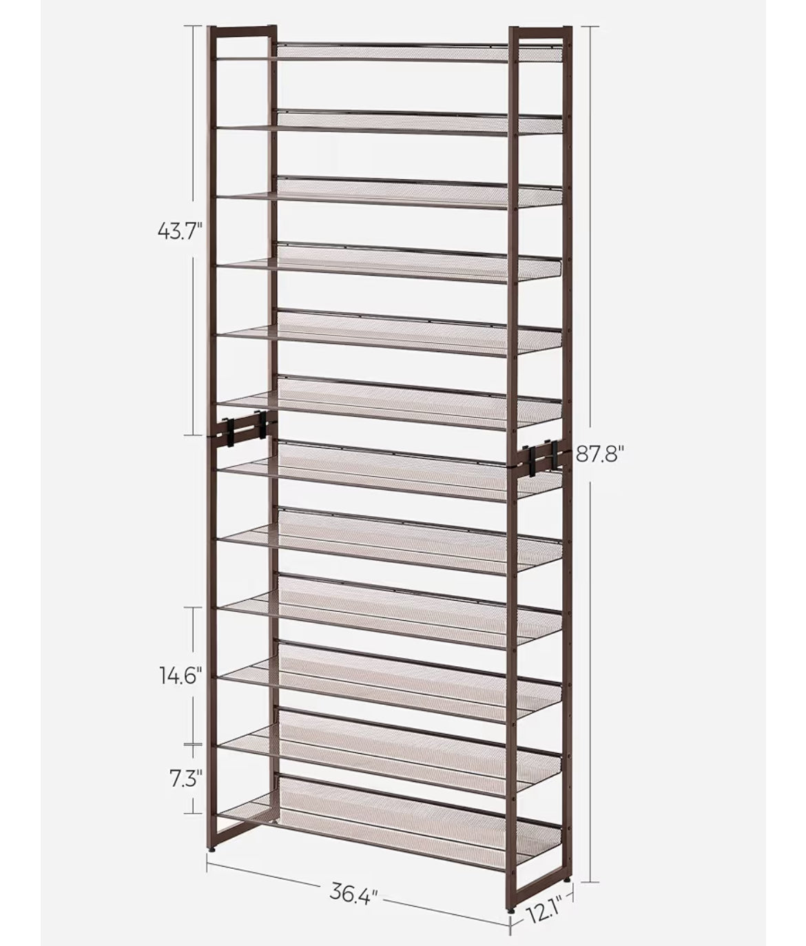 SONGMICS 12-Tier Shoe Rack Organizer Metal Rack Shelves Holds 48-60 Pairs - Bronze