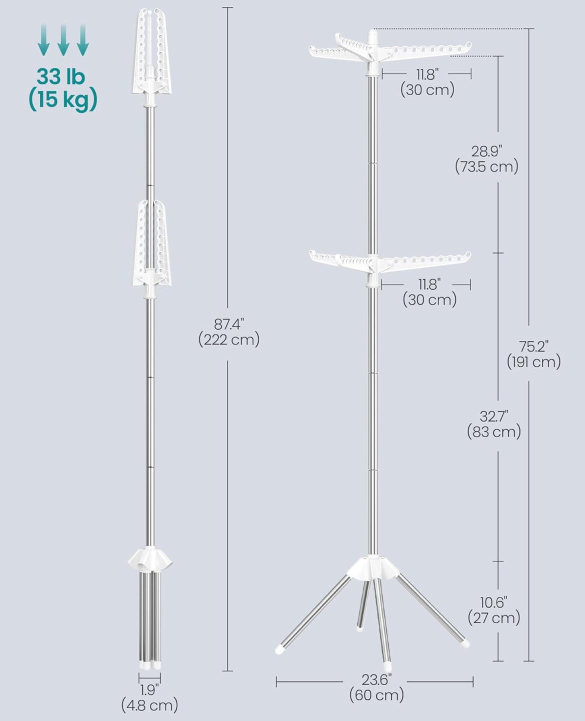 SONGMICS 2-Tier Clothes Drying Rack Folding Laundry w/ 6 Rotatable Arms - White