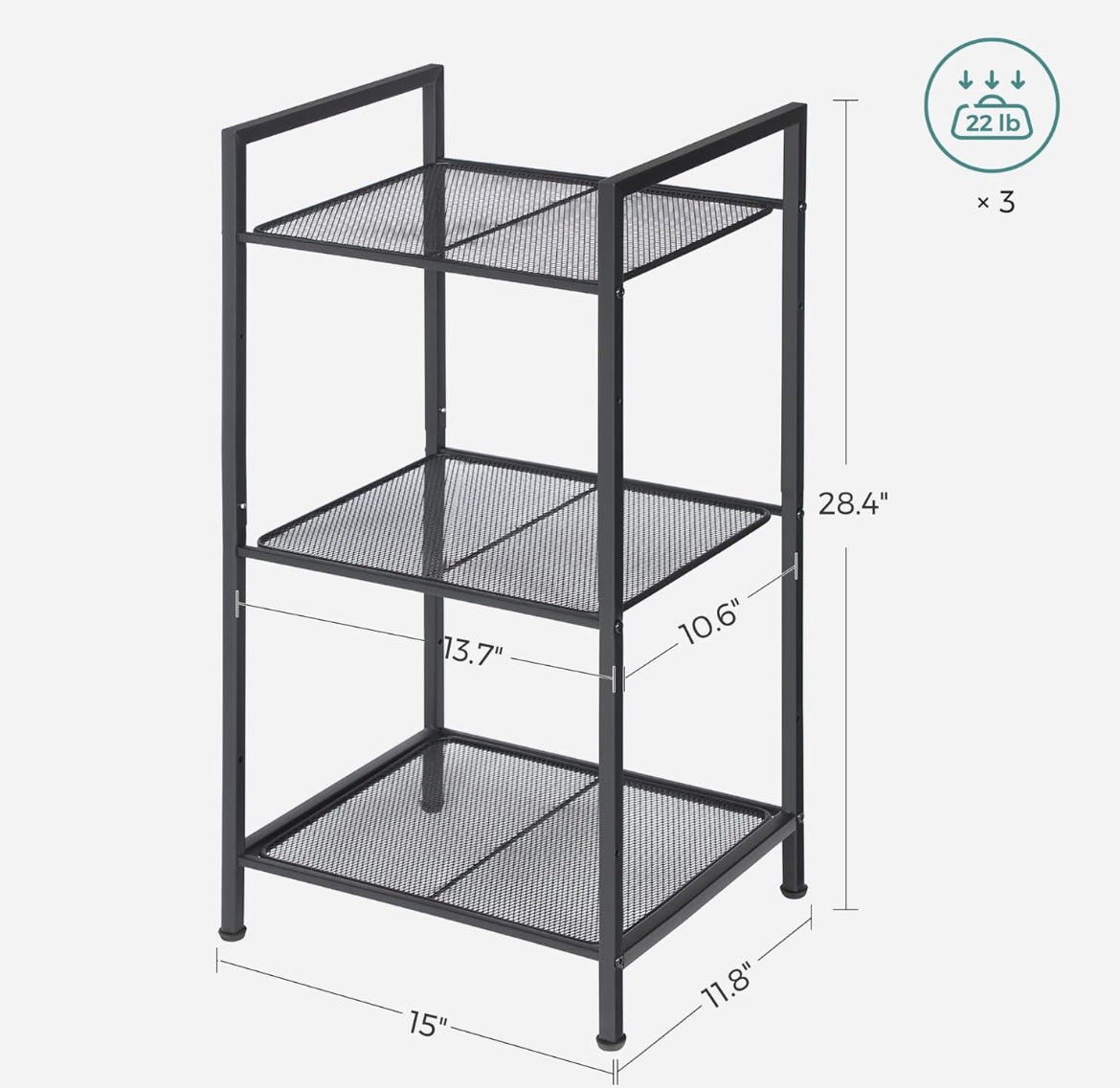 SONGMICS 3-Tier Storage Rack Bathroom Shelf Extendable Plant Stand w/ Adjustable Shelf - Black