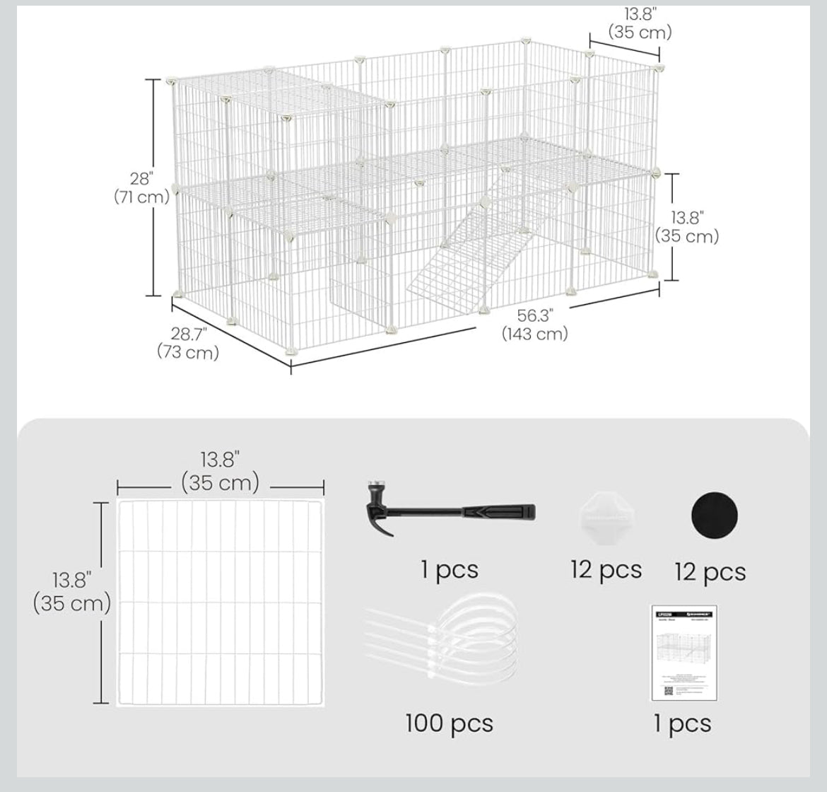 SONGMICS 36 Panels Pet Playpen Small Animal Rabbit Guinea Pig Cage - White